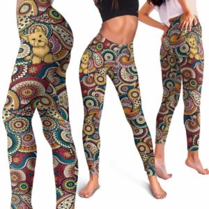 Poodle Dog Lovers Mandala Pastel Yoga Gym Workout Women Leggings. Dog Mom Dog Dad Dog Owner Gift Custom Leggings.
