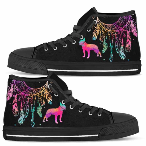 Boston Terrier Dog Lovers High Top Shoes Gift Men Women. Colorful Dreamcatcher Custom Shoes.