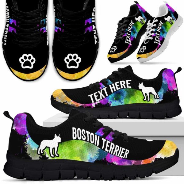 Boston Terrier Dog Lovers Watercolor Sneakers Gym Running Shoes Gift Women Men. Dog Mom Dog Dad Custom Shoes.