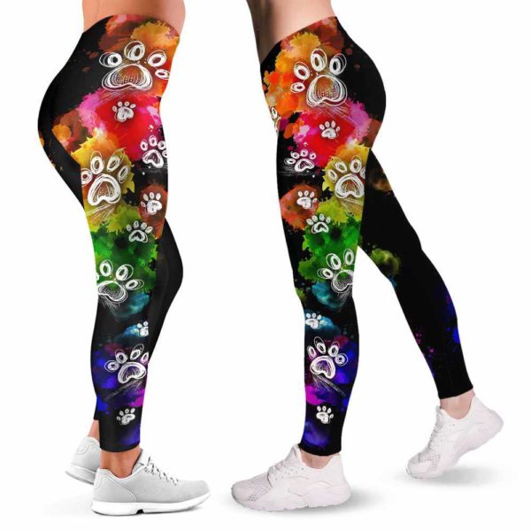 Dog Lovers Dog Paw Print Watercolor Leggings For Women. Workout Yoga Pattern Printed Women Leggings. Dog Mom Custom Gift.