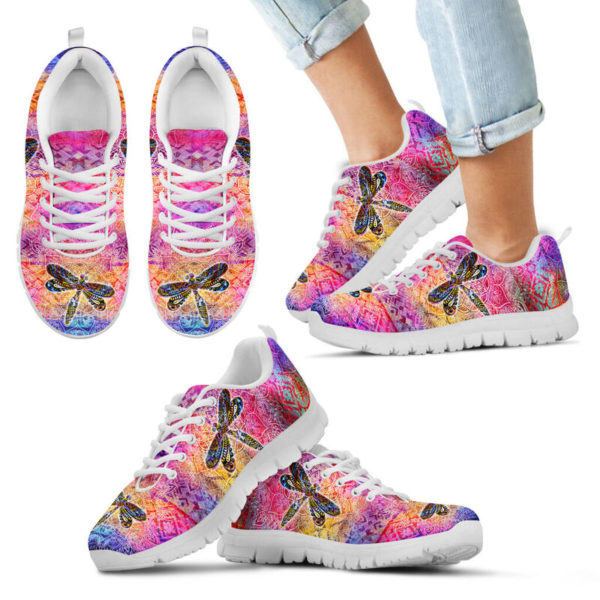 Dragonfly Colorful Mandala Sneakers_Tta Sneakers, Running Shoes, Shoes For Womens, Mens, Custom Shoes, Low Top Shoes, Customized Sneaker