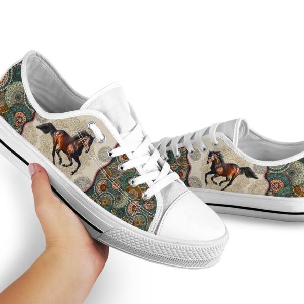 Horse Vintage Mandala Low Top Shoes For Mens, Womens Tennis Custom Shoes, Custom Low Top, Personalised Sneaker Shoes